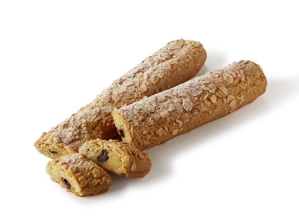 Krokant koekdeeg gevuld met amandelspijs met stukjes amarenakers